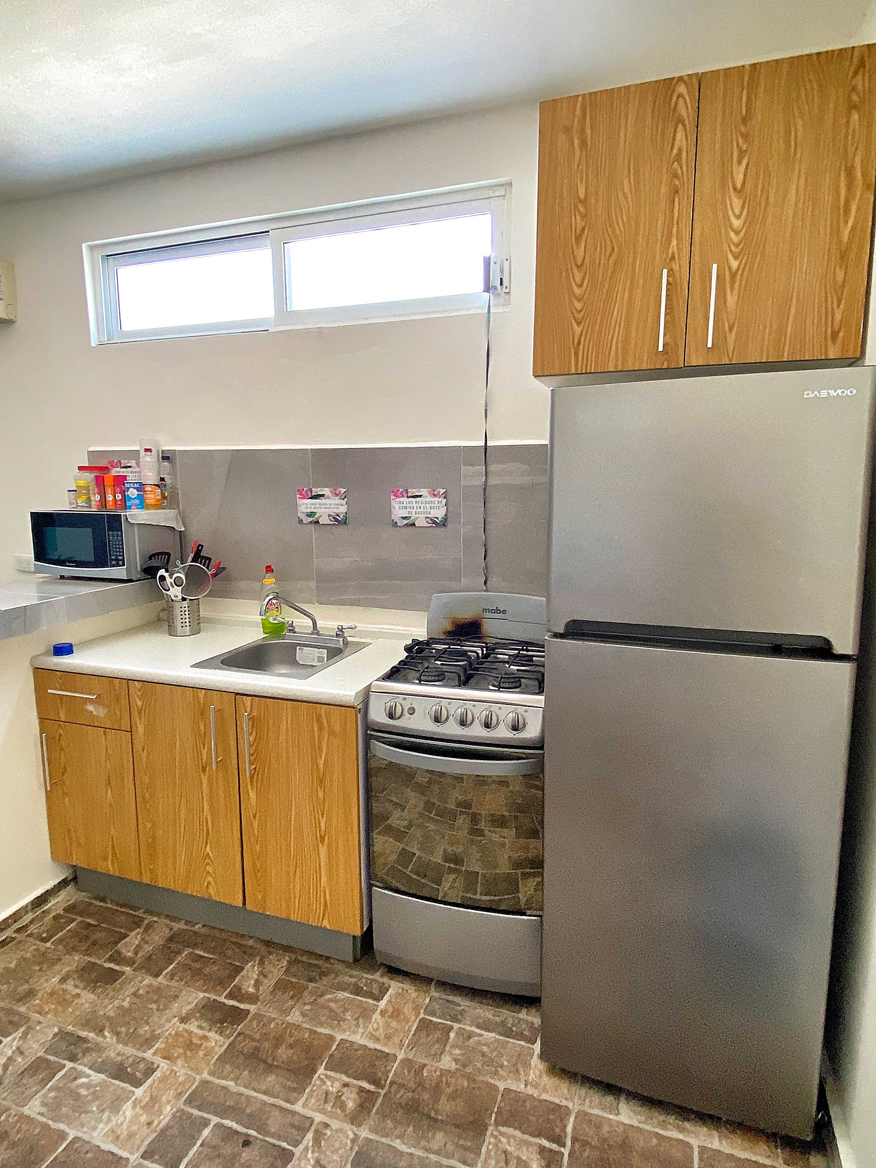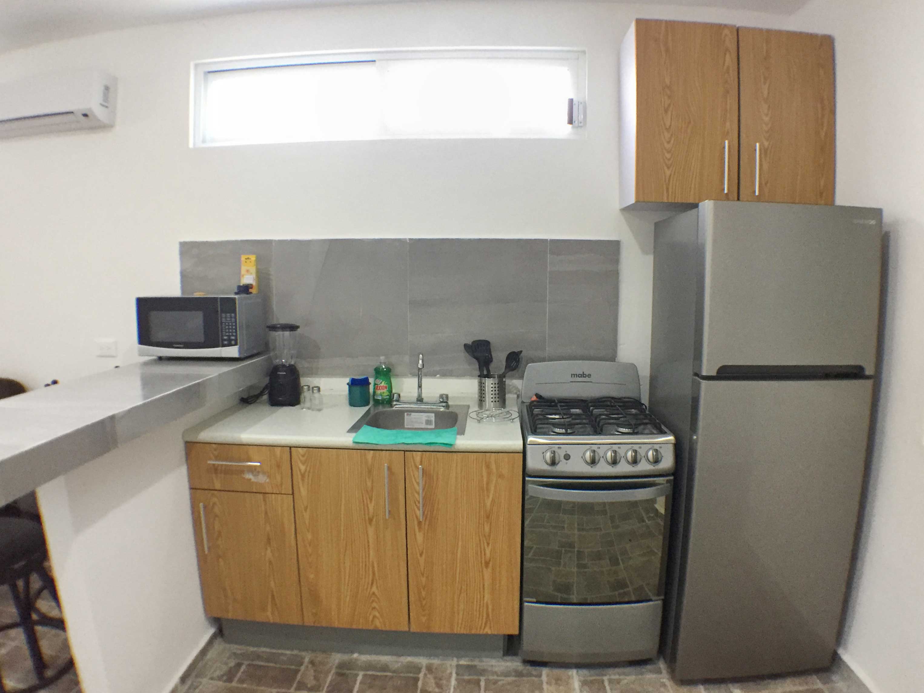 📶 Wifi 📺 Pantalla TV con internet Ventiladores y Aire acondicionado en sala y recámara. 🚗 Espacio de estacionamiento para un auto al aire libre. Zona muy tranquila con varias vialidades de fácil movilidad.