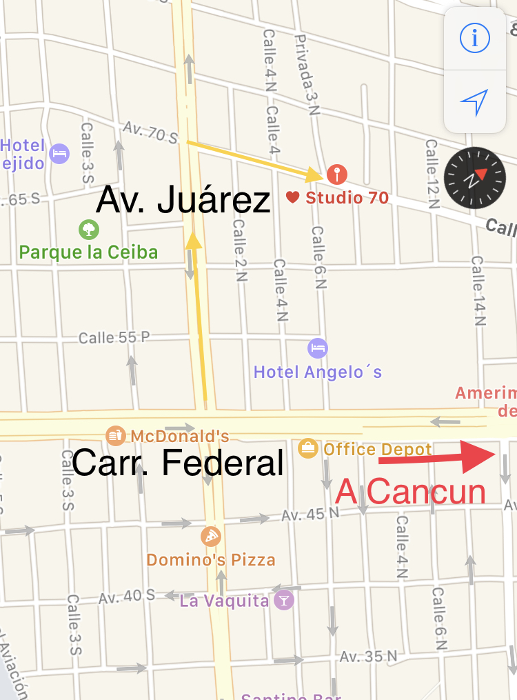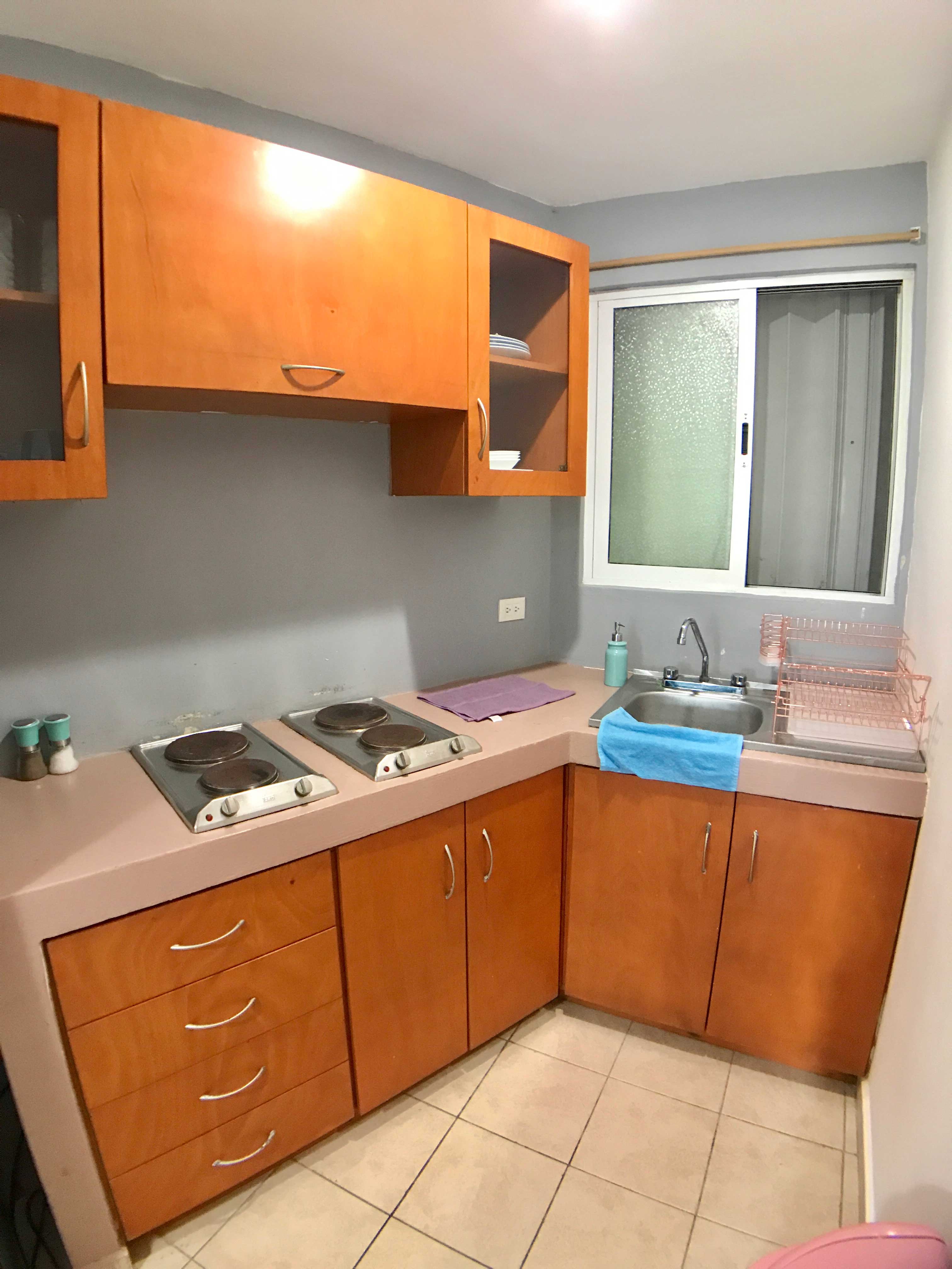Estudio con 2 camas Queen size y un baño completo, al ser STUDIO no tiene paredes o divisiones en cocina, camas o sala. Edificio con áreas comunes vigiladas y estacionamiento al aire libre. 🛣️ El estudio se encuentra a 20 minutos caminando del centro, o 5- 8 minutos en auto. A 3 cuadras de la Carretera Federal que conecta Cancún, Playa del Carmen, Tulum y Bacalar. 🛒 Se encuentra cerca de una avenida principal (Av. Juárez) donde se encuentran establecimientos para comprar comida y otras cosas necesarias